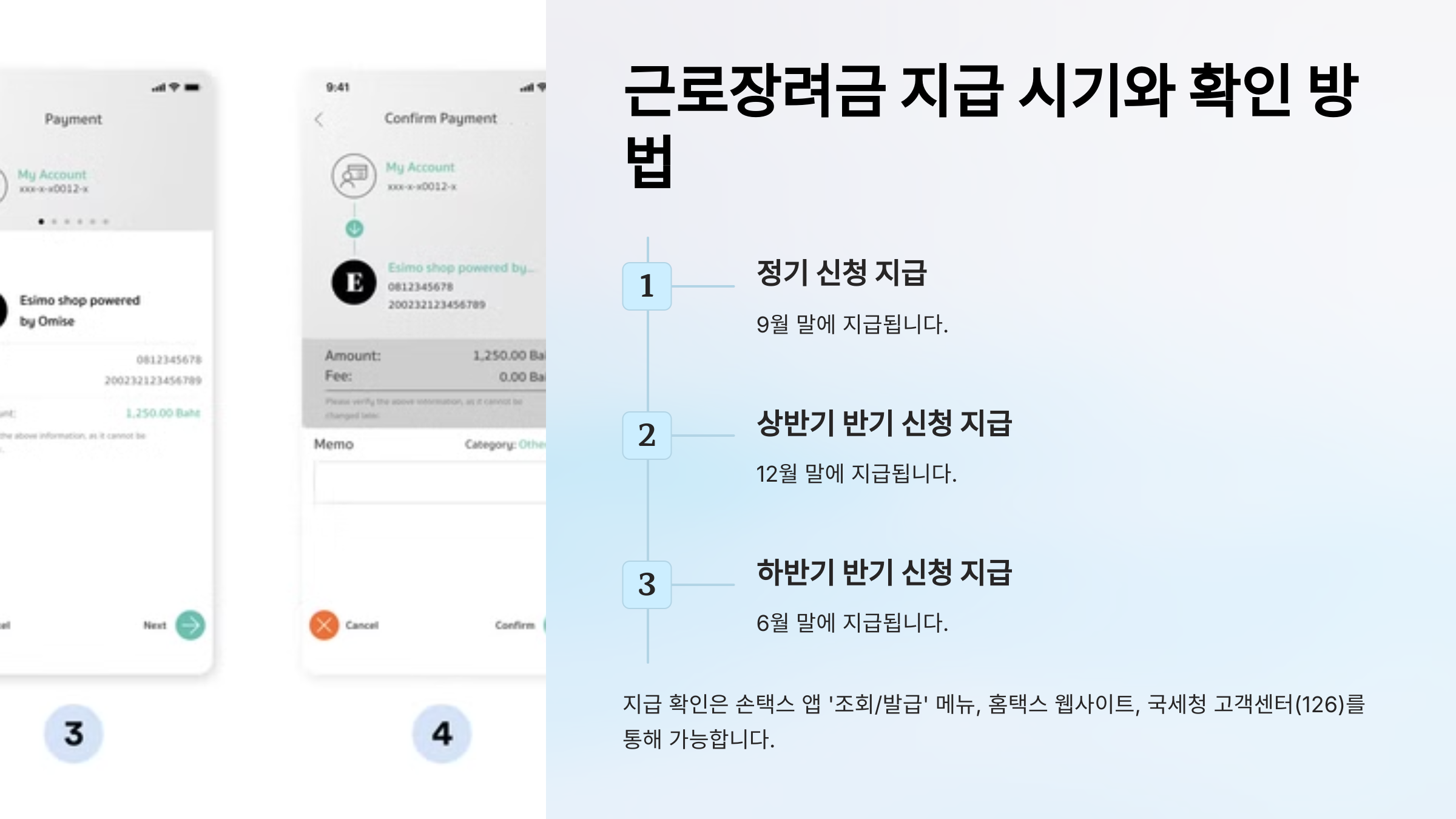 근로장려금은 일반적으로 5월에 정기신청을 받고, 9월 중순부터 지급이 시작됩니다. 📅 단, 심사에 따라 일부 신청자는 지급이 지연될 수도 있어요. 또한 반기신청자는 각각 6월과 12월에 신청하여, 9월과 다음해 3월에 지급받게 됩니다. 지급 일정은 국세청 공식 홈페이지 및 손택스 공지로도 확인 가능합니다.
